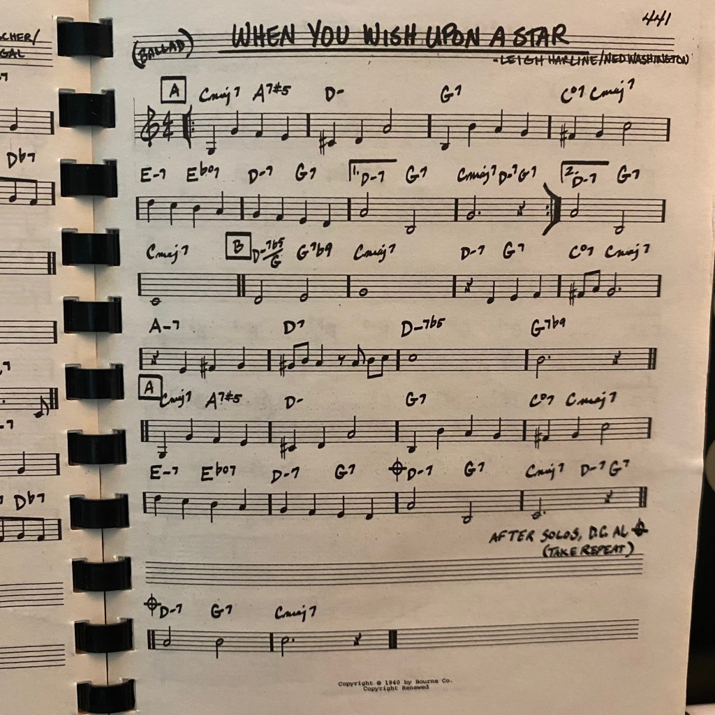 i’ve also been finding inspiration by flipping through sean’s old, coffee-stained real book. if you don’t know what a real book is, it’s a collection of jazz standards written out with the chords and melody.