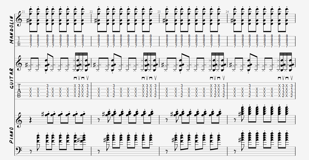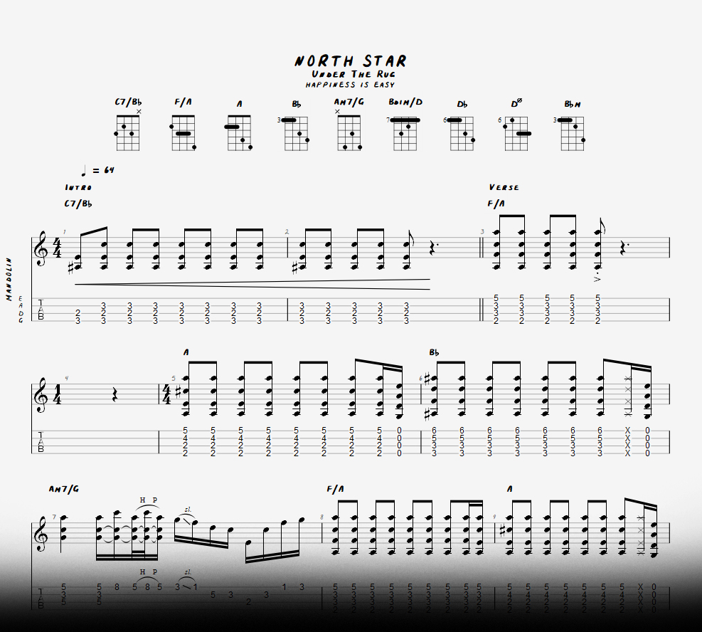 mandolin with staccato eighth notes all the way through playing a D half-diminished (also known as Dø), which is something I had never heard of until tabbing this song (i told you i was a baby).