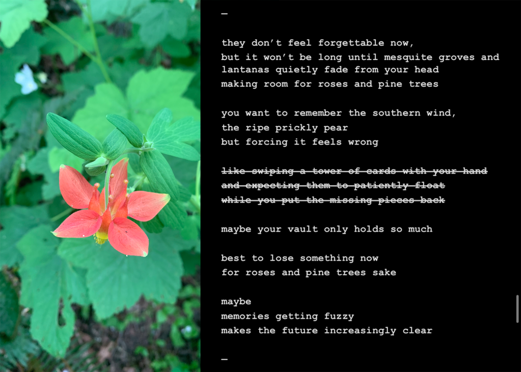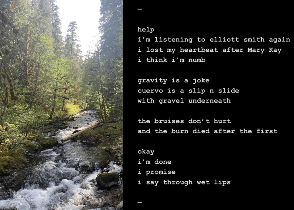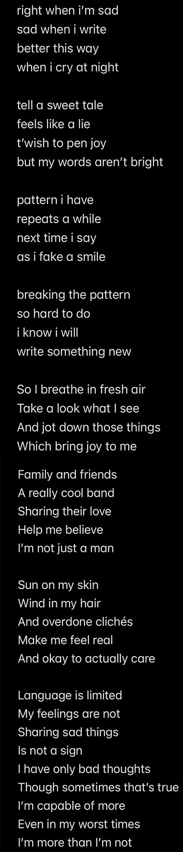 I heavily relate to being sad whenever i write and feeling like I’m better at writing sad stuff. So that inspired this poem, “writing the wrong things”.
